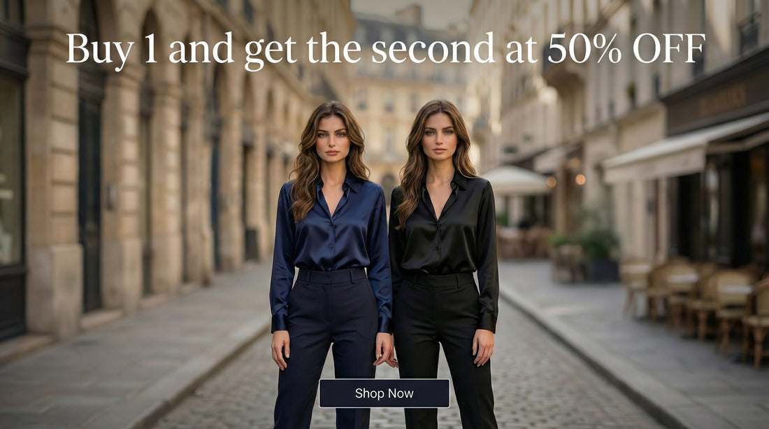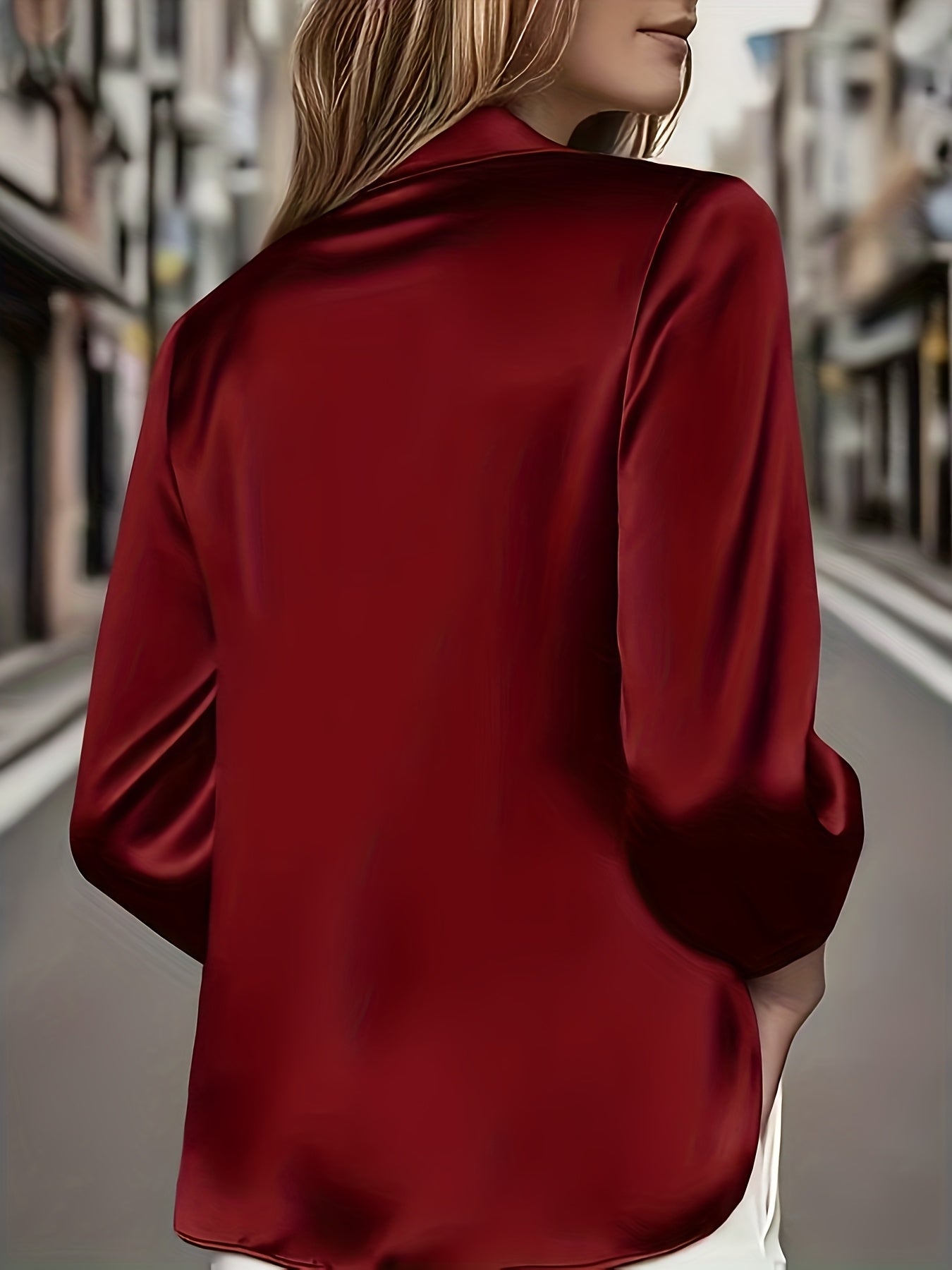 Women’s Satin Long Sleeve Blouse – Elegant V-Neck Button Top for Work & Casual Wear