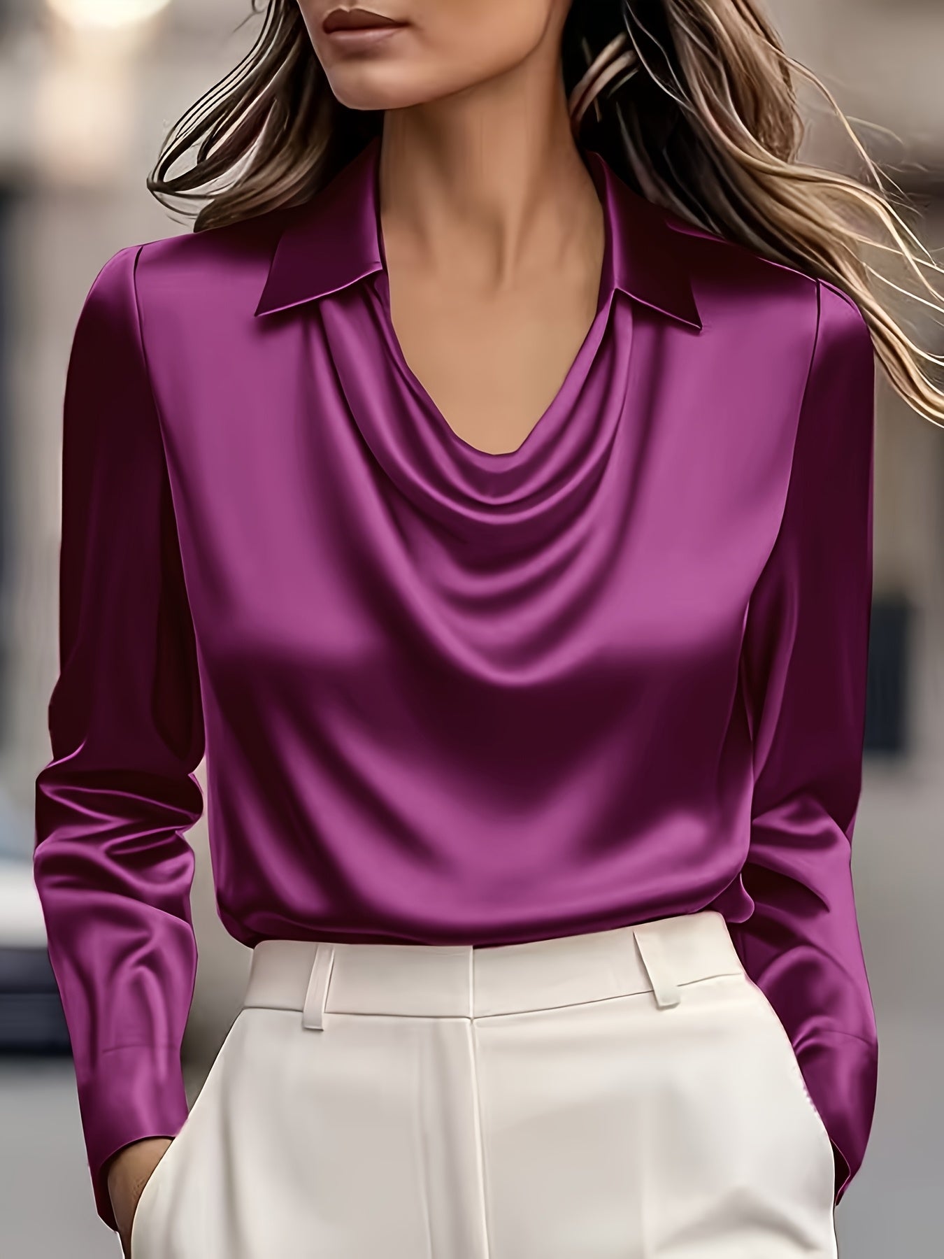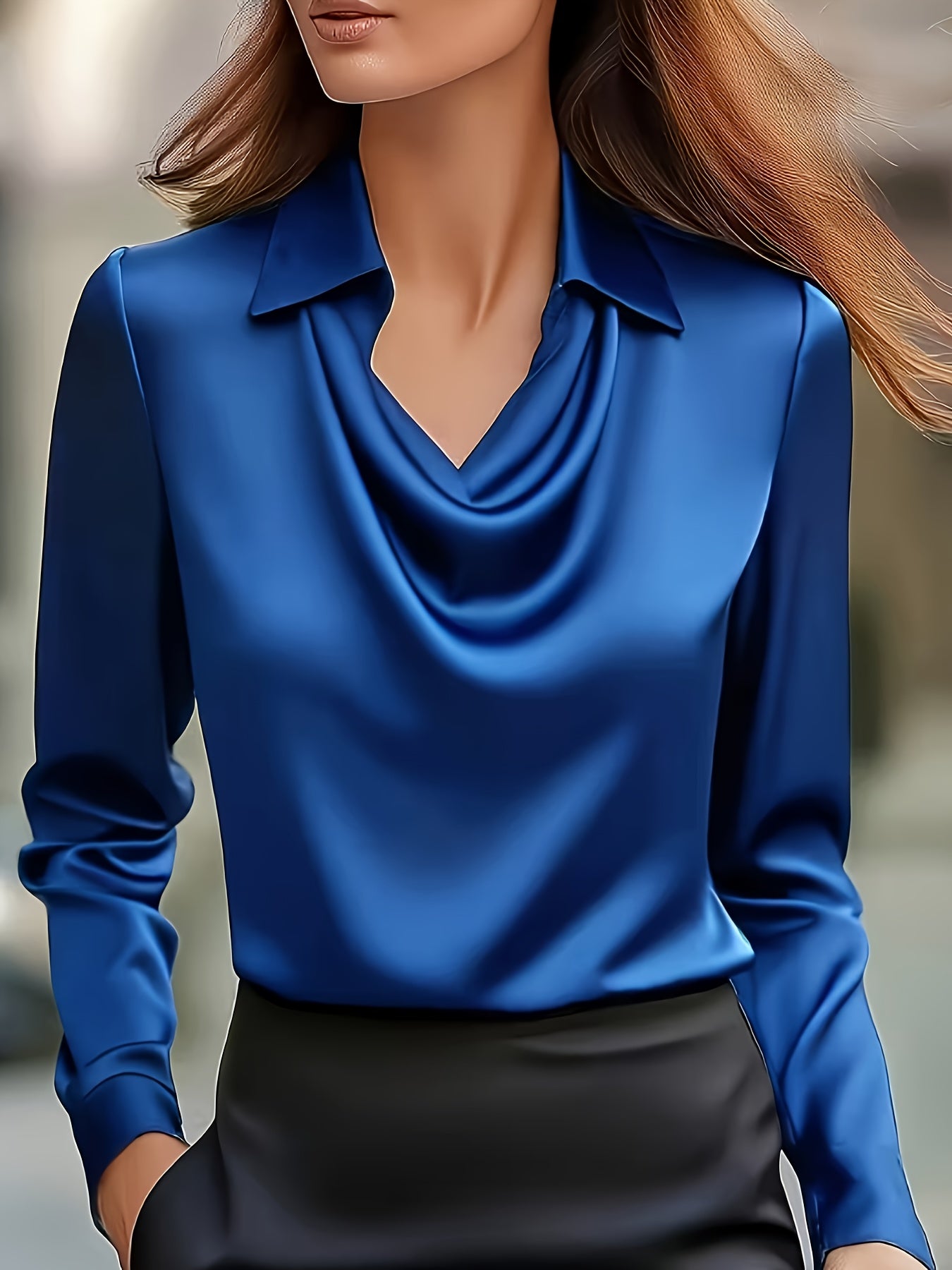 Women'S Long-Sleeve Satin Blouse with a Flowing Collar for Spring And Autumn