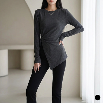 American women’s long-sleeve slim-fit T-shirt with half-open collar for autumn/winter