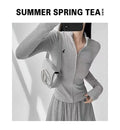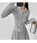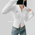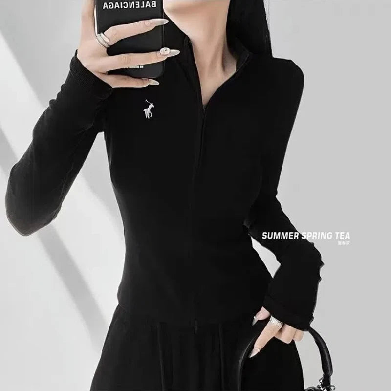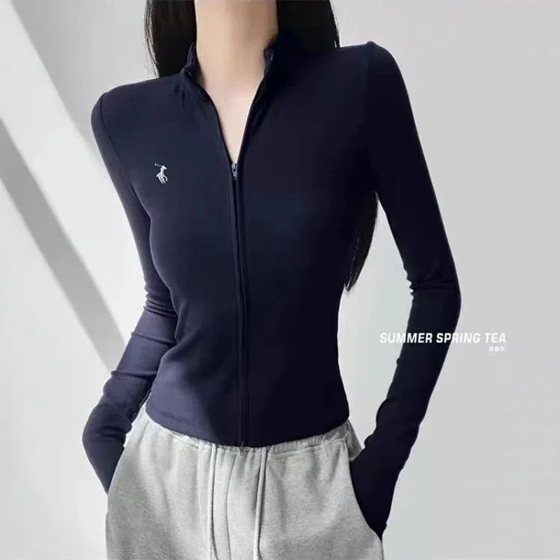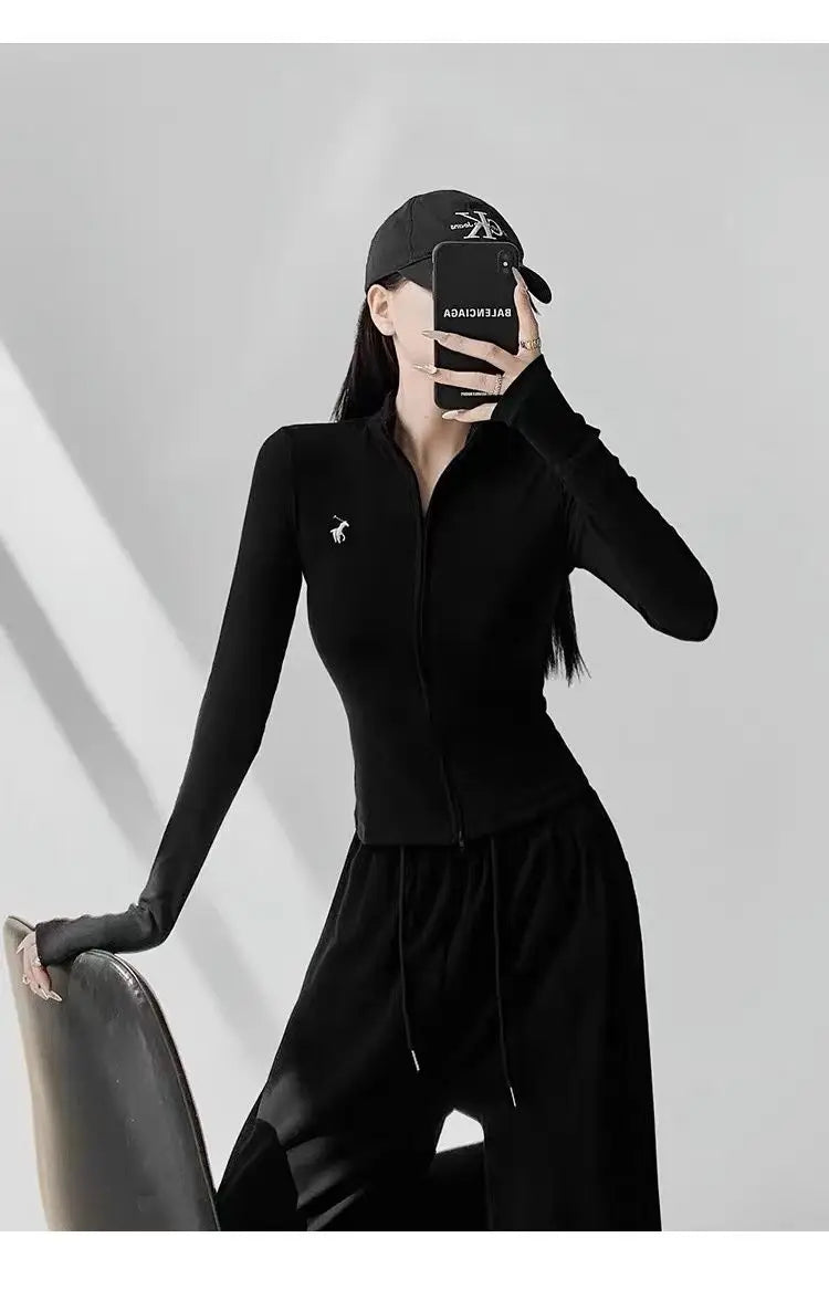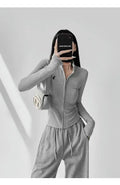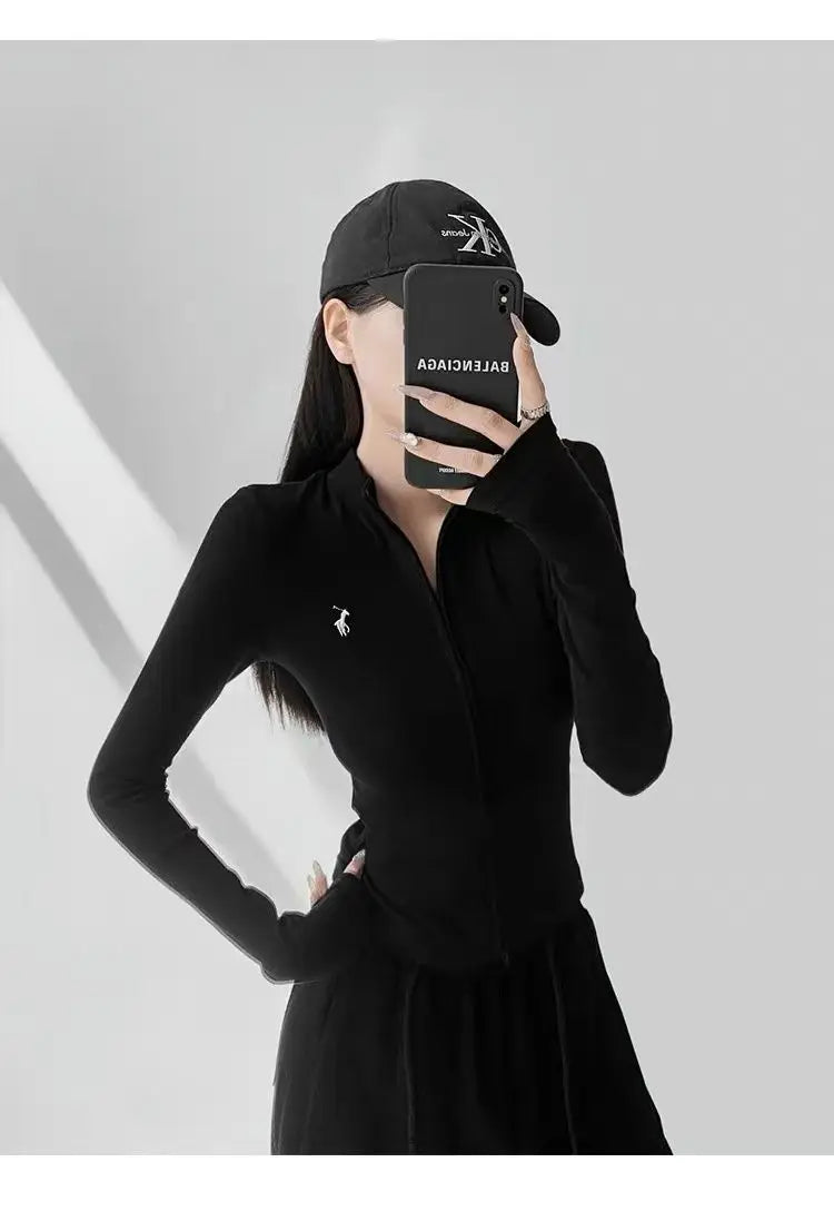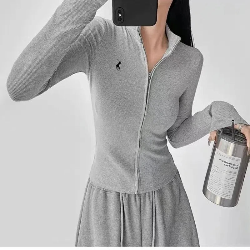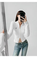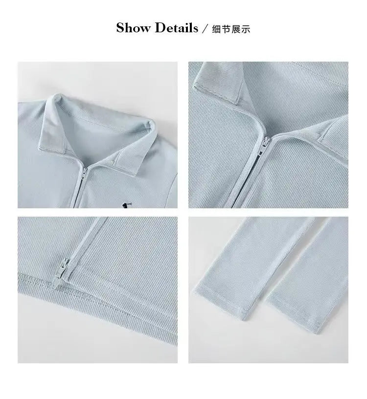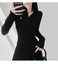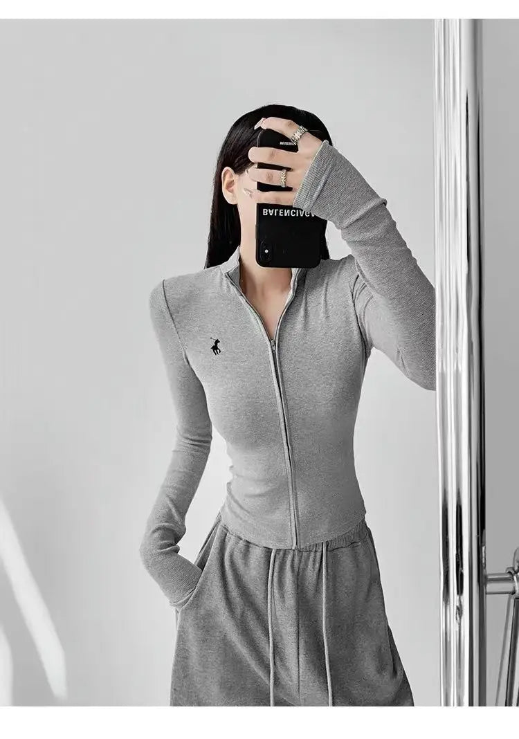This long-sleeve top is the perfect blend of comfort and style. The slight stretch fabric allows freedom of movement, while the zipper details add a modern, casual edge. Ideal for layering during autumn and winter or wearing alone for a chic everyday look.