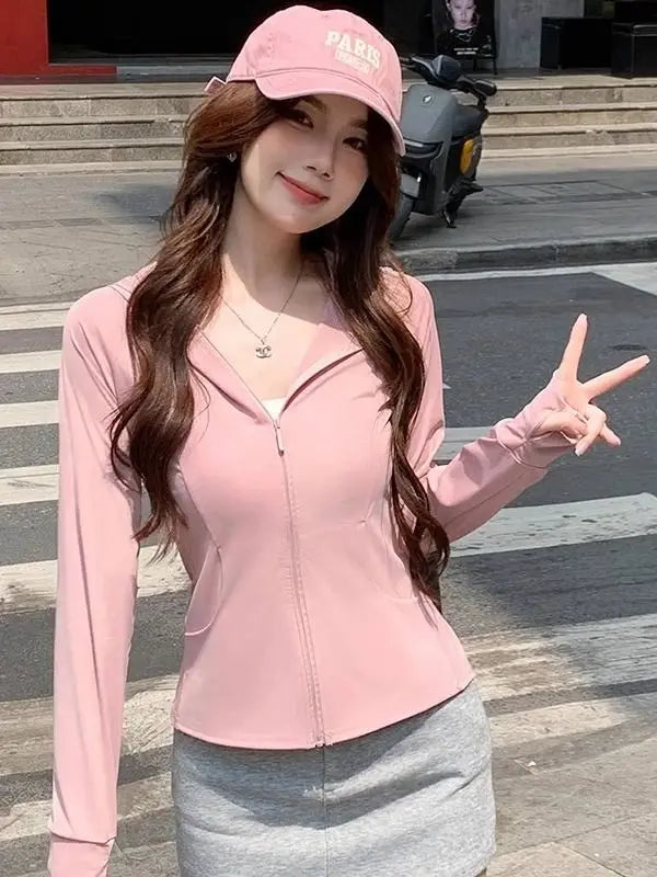 🌟 Women’s Summer Hooded Zipper Jacket – Lightweight Sun Protection Top 🌟