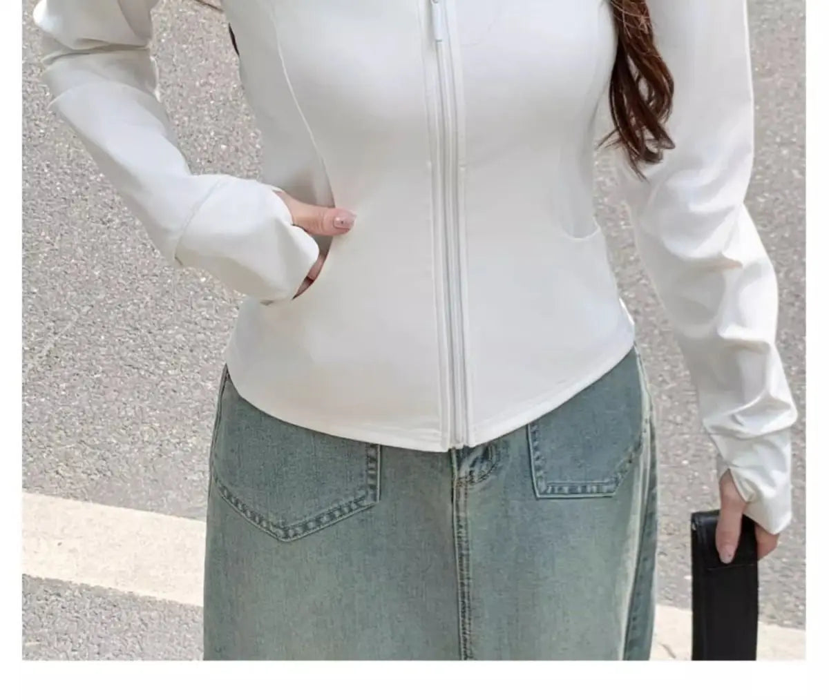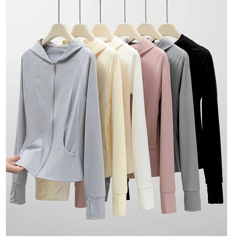 This lightweight hooded jacket is perfect for summer outdoor activities. Its breathable polyester knit keeps you comfortable while providing sun protection. The full zipper and casual design make it easy to wear over any outfit, ideal for sports, travel, or casual daily wear. Pair with shorts, leggings, or jeans for an effortless, sporty look.