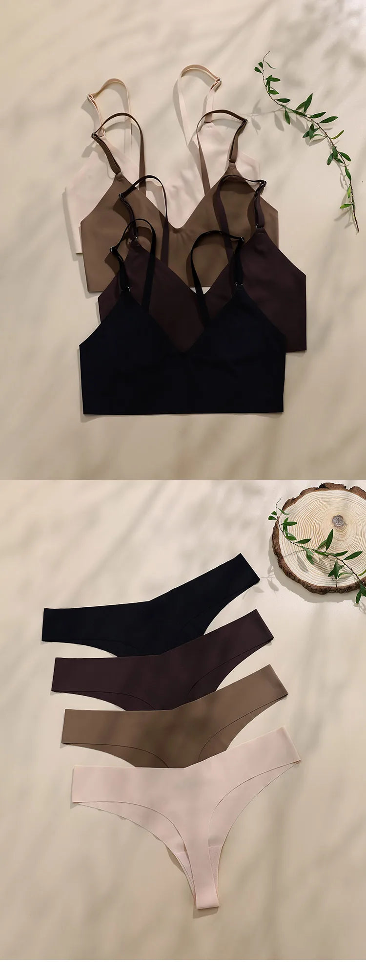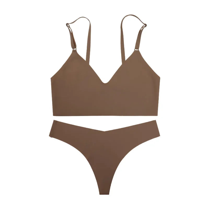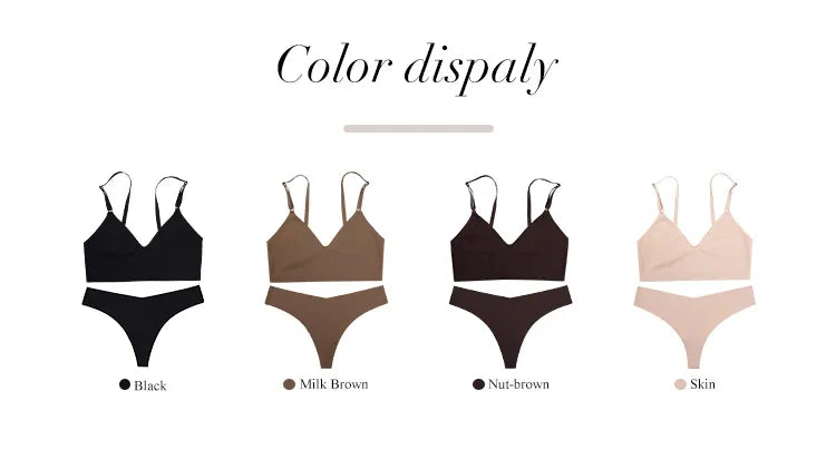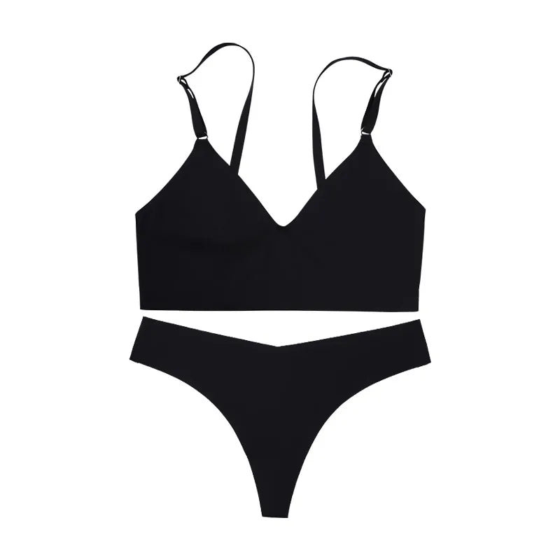 Women’s Seamless V-Neck Wireless Lingerie Set with Panties