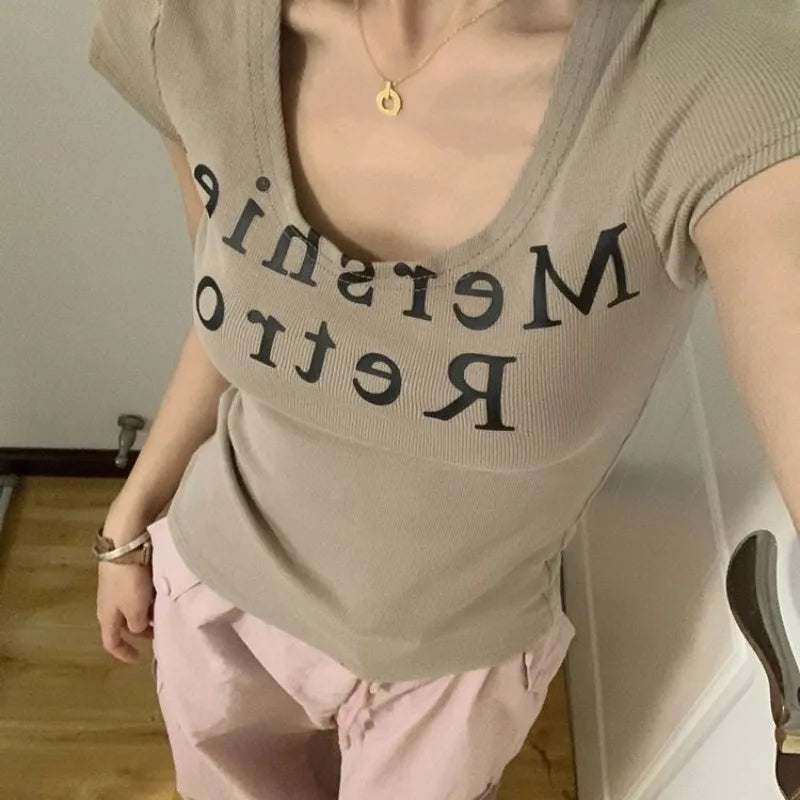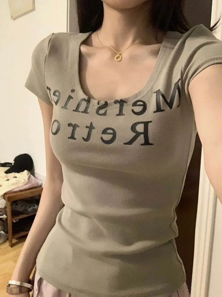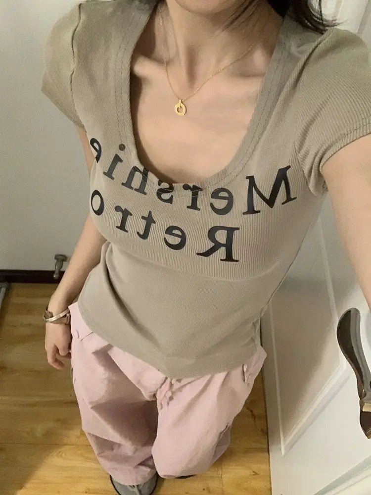 This slim-fit summer T-shirt is perfect for casual outings, weekend activities, or everyday wear. The lightweight polyester knit ensures comfort, while the letter print and subtle screw-thread detailing add a fashionable touch. Pair with jeans, skirts, or shorts for a trendy, effortless summer look.