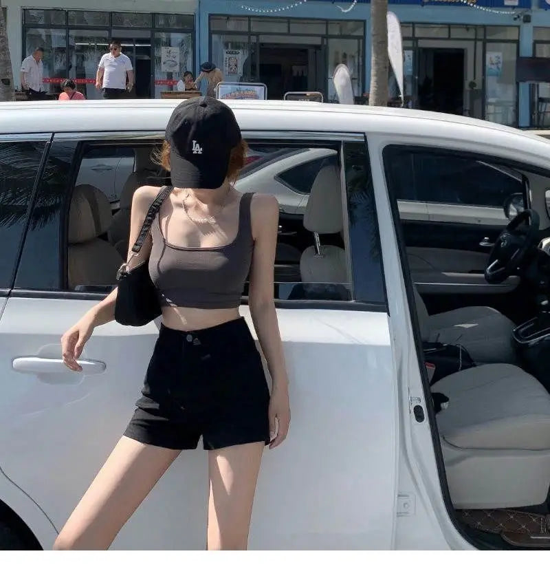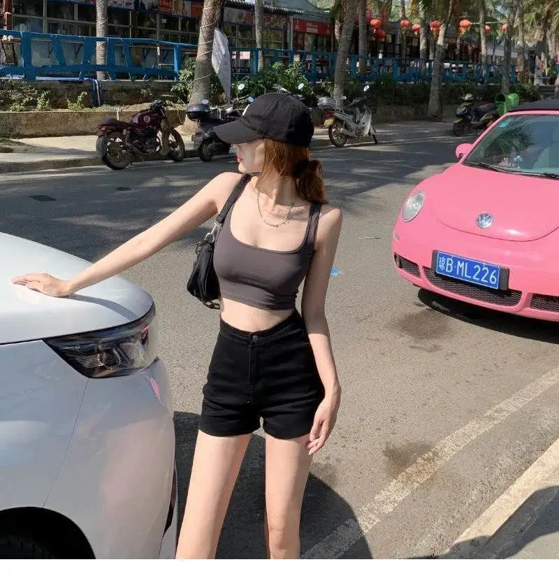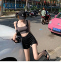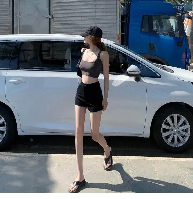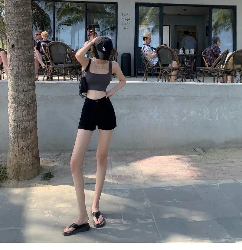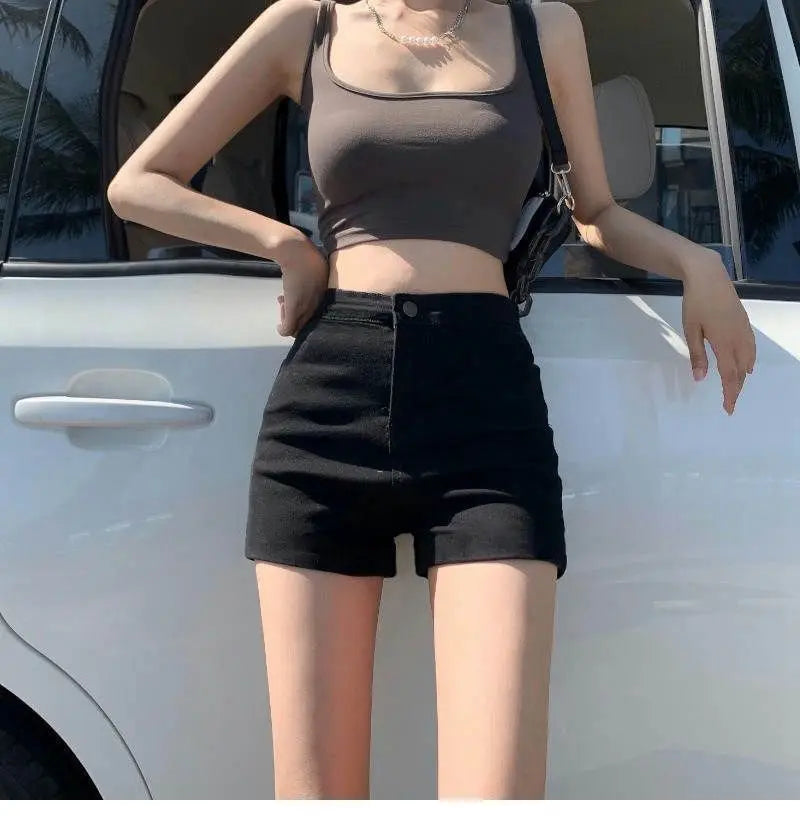 Summer women’s high-waist black slim-fit “Spicy Girl” shorts