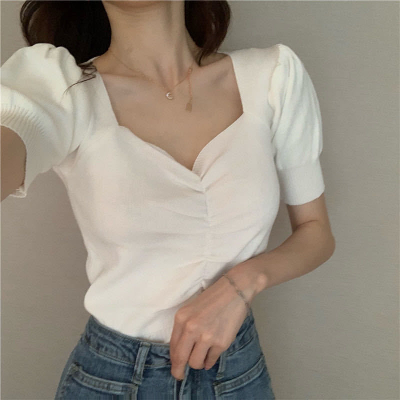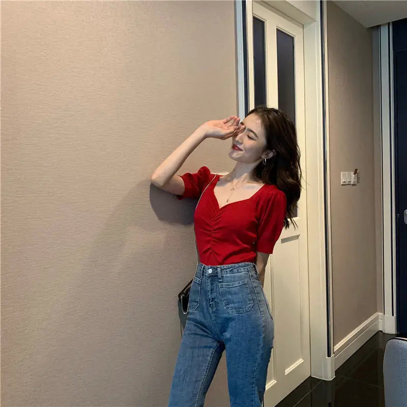 Summer women’s solid slim knit T-shirt – versatile and fashionable