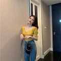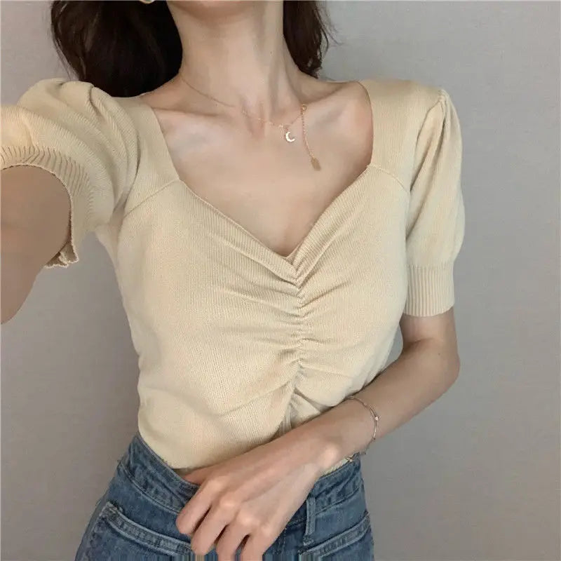 🌟 Junior Women’s Slim V-Neck Summer Knit Top – Casual & Stylish 🌟