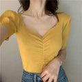 This slim V-neck summer top is perfect for casual summer outings or layering. The super-short length and folded detailing add a trendy, stylish touch, while the soft viscose fabric ensures all-day comfort. Pair with shorts, skirts, or jeans for a chic, effortless summer look.