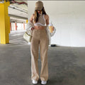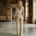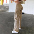 Straight Pants with Zipper, High Waist, Pockets, and Slight Stretch