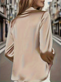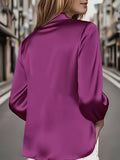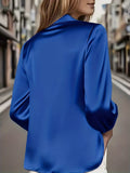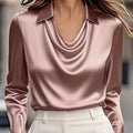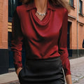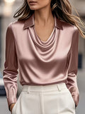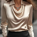 Women'S Long-Sleeve Satin Blouse with a Flowing Collar for Spring And Autumn