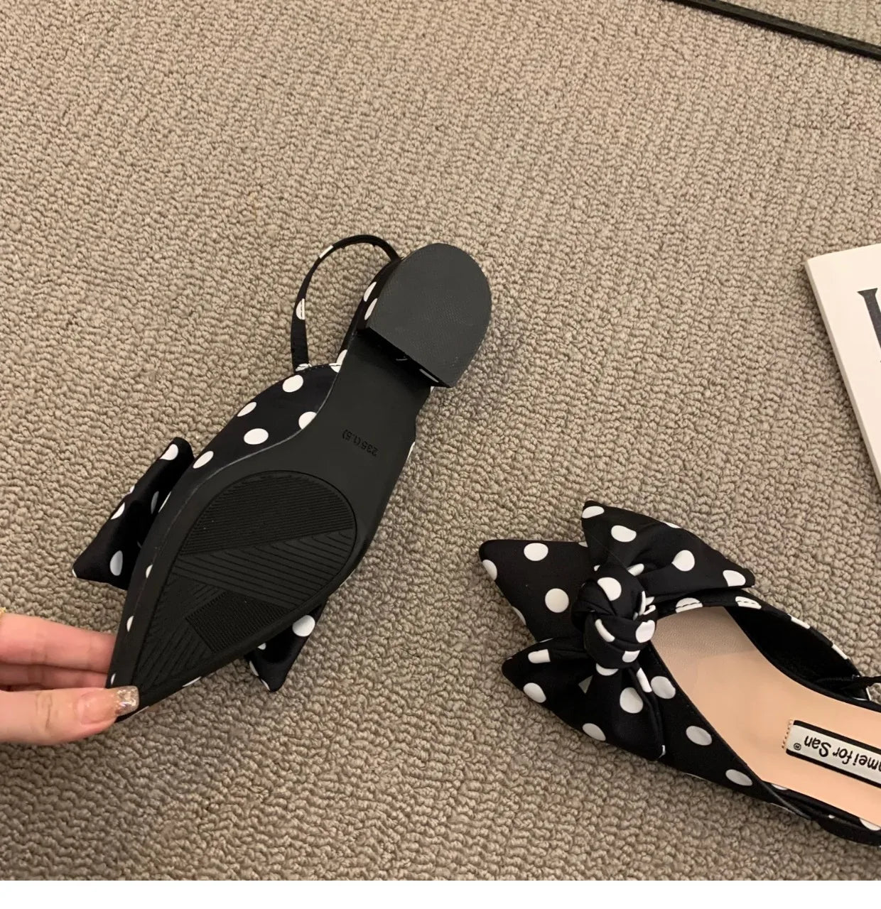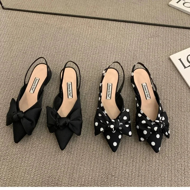✨ Women’s Polka Dot Low-Heel Mules – Elegant Butterfly Knot Design ✨