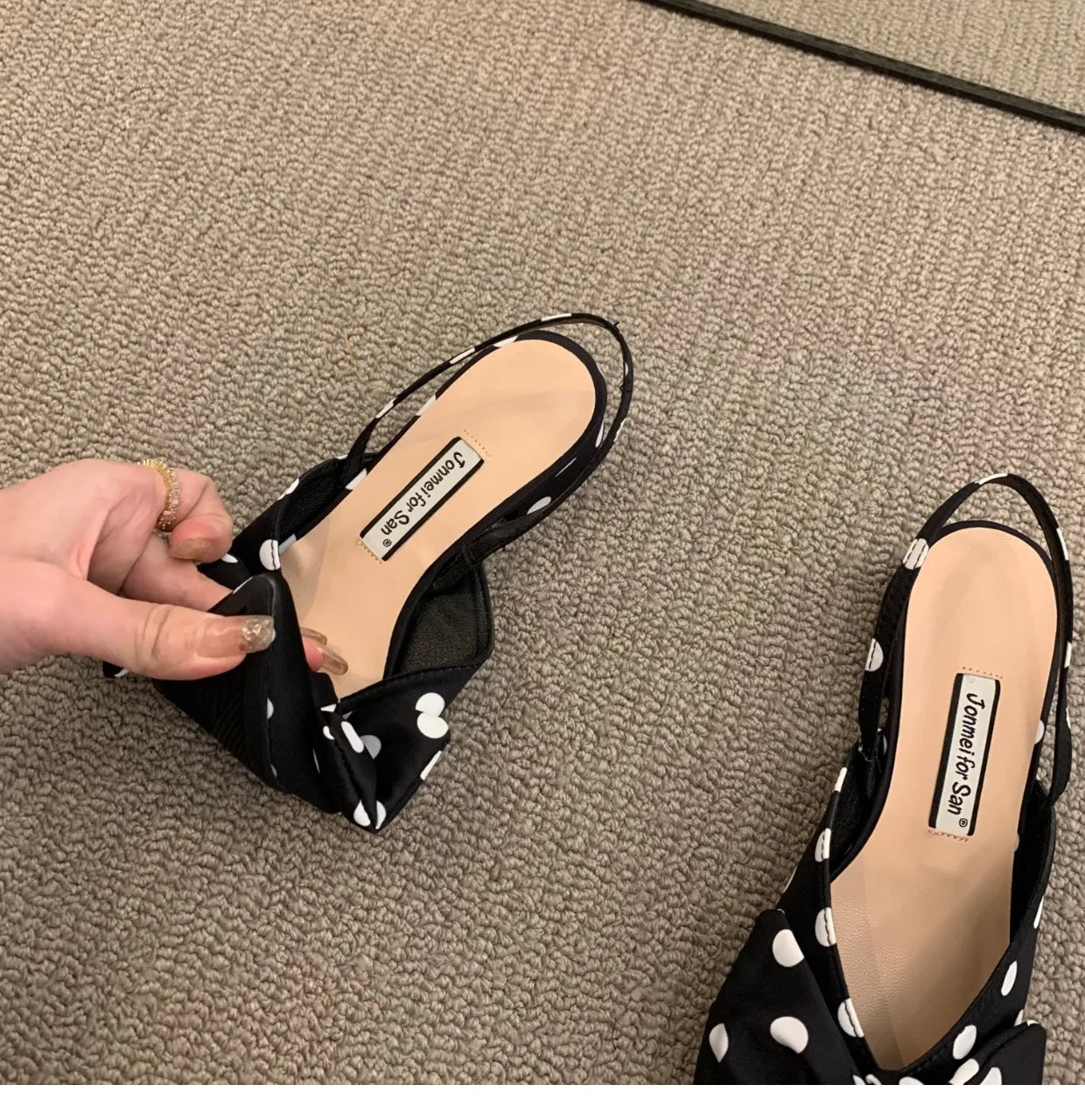 Step into effortless elegance with these Women’s Low-Heel Sandals, perfect for casual days or refined outings. Designed with a charming butterfly-knot detail and classic polka dot pattern, these sandals blend fashion, comfort, and sophistication.