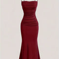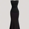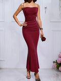 Women’s Solid Color Ruched Dress, Elegant Sleeveless Party Dress